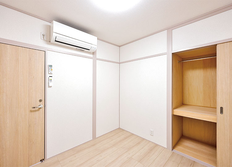 フロアごとに男子寮と女子寮に分かれていて、各部屋にユニットバス・洗面所・トイレ・エアコン完備のほか、全員にそれぞれ個室が用意され、プライバシーが確保されています。